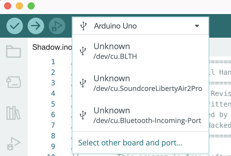 After it is installed, it's time to grab the SHADOW Arduino Sketch from Github here and then unzip it, the resulting folder will probably be called "SHADOW-master".